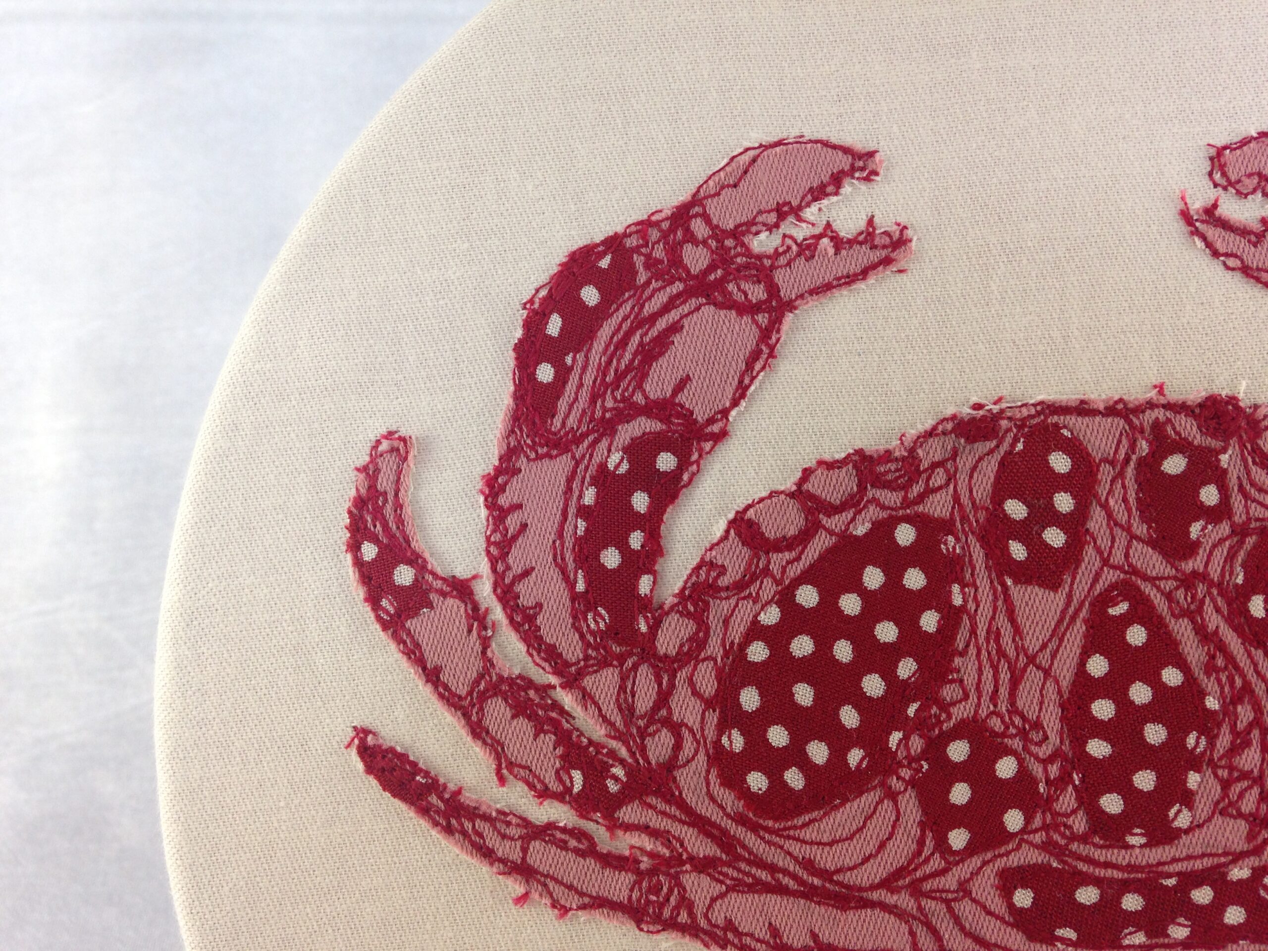 The beautiful accent fabric on this Crab is from repurposed vintage fabric and the rest is of great quality cotton.